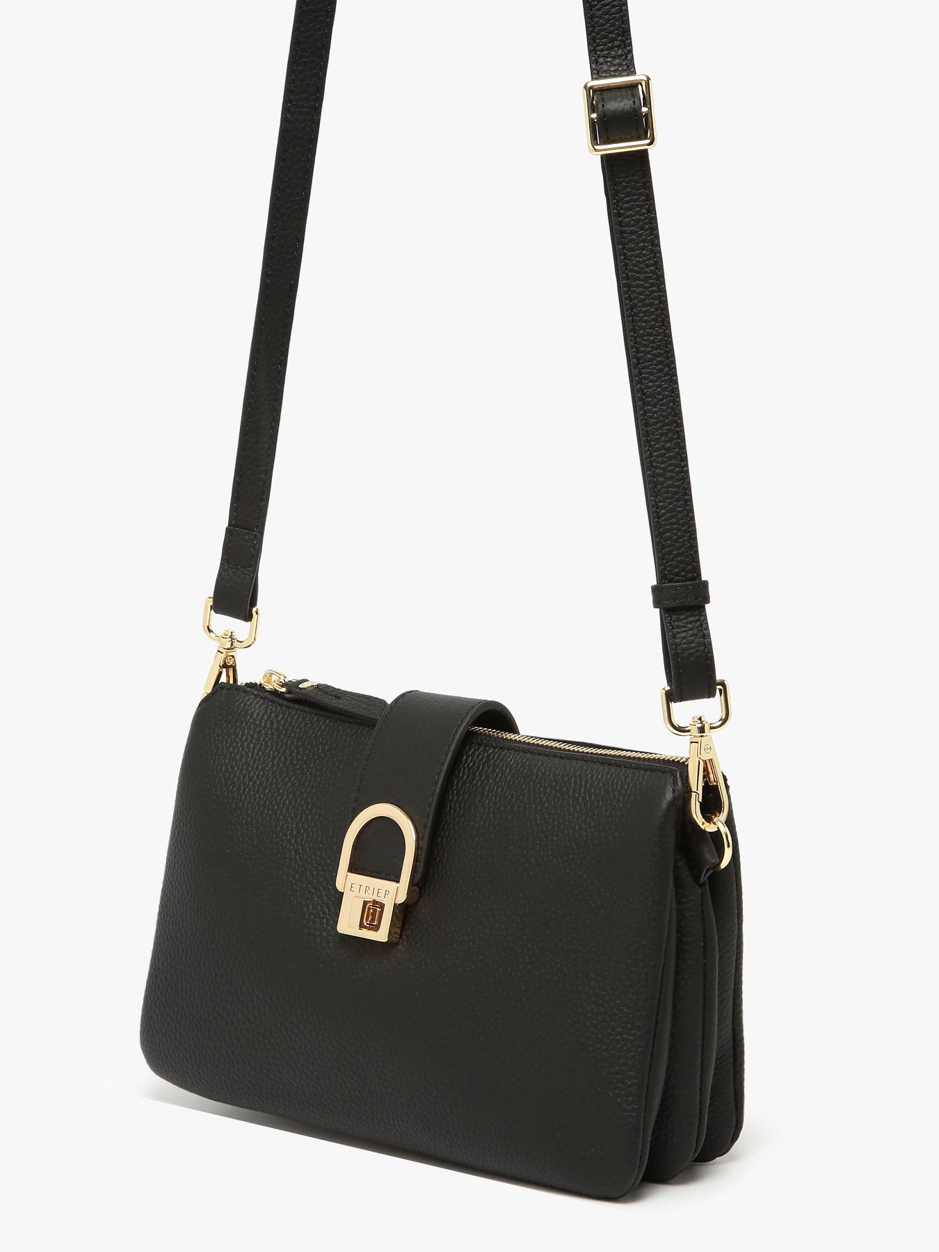 The ETRIER crossbody bag from the EQUESTRE line is crafted from cowhide leather, combining durability and elegance. Its refined exterior features a zip closure beneath a flap secured with a decorative clasp, adding a sophisticated touch to this practical model. The adjustable and removable shoulder strap offers comfortable and versatile wear. Inside, the bag is divided into three compartments with one slip pocket and one zip pocket, perfect for organizing your everyday essentials. The EQUESTRE collection stands out with its delicate hardware and meticulous finishes, embodying a perfect balance between rustic charm and refinement. This bag becomes your ideal companion for winter, combining functionality and style with elegance.