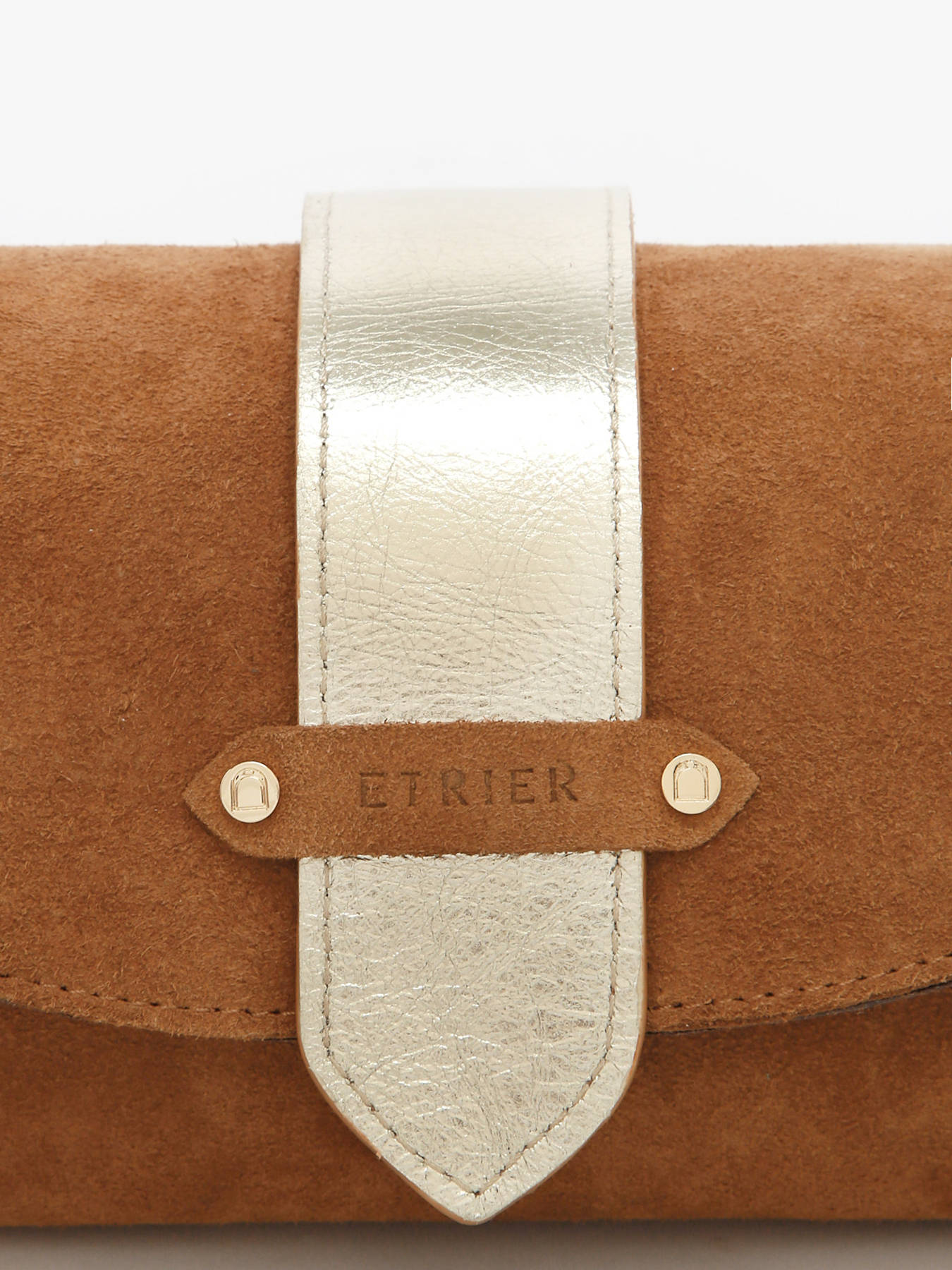The ETRIER logo, embossed on natural leather and accompanied by a small French flag, serves as a subtle marker of craftsmanship. The leather shoulder strap measures 130 cm upon delivery and can be easily adjusted using the discreet knot inside the bag—simply untie, adjust, and re-tie to achieve your ideal length.